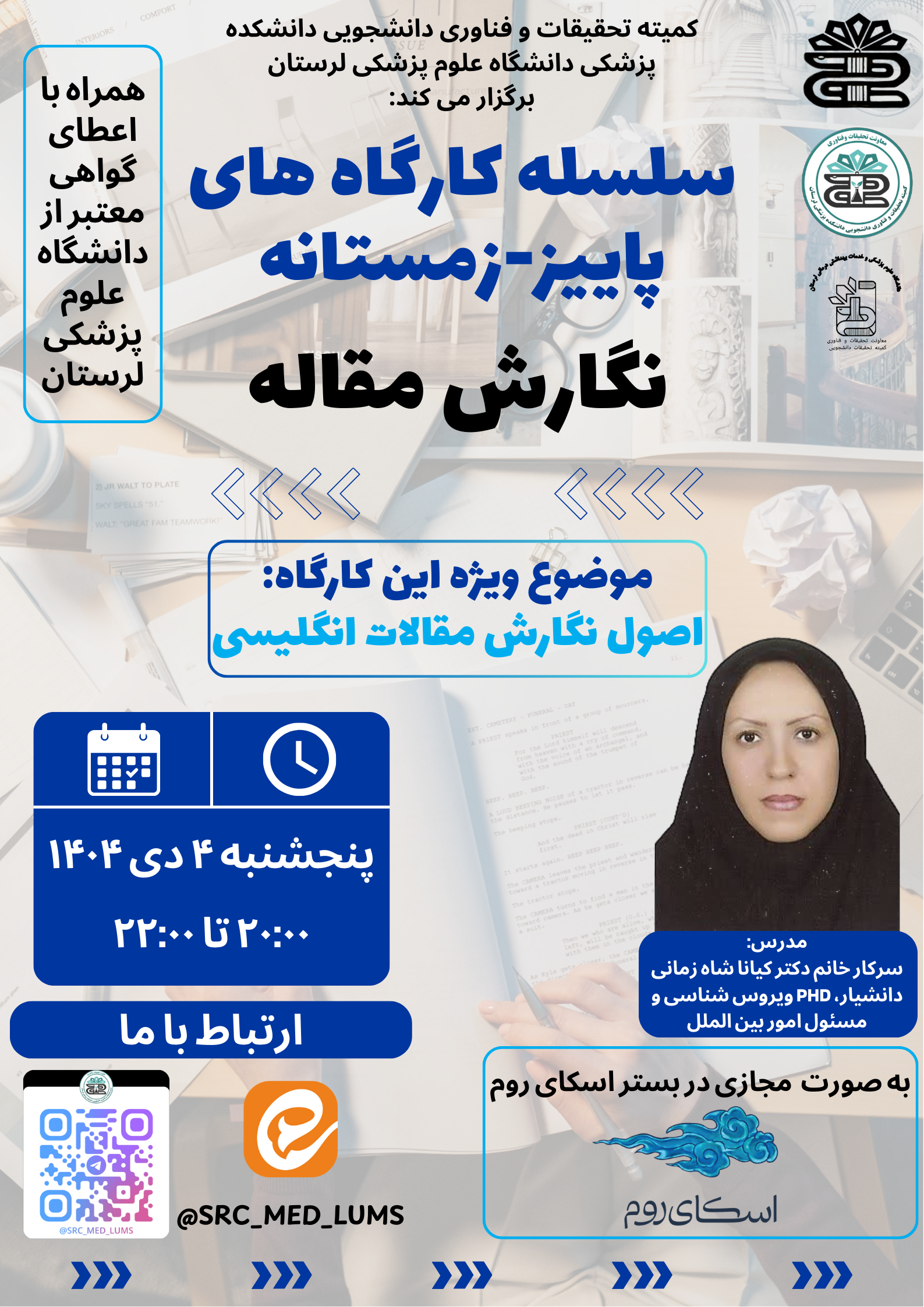 کمیته تحقیقات و فناوری دانشجویی دانشکده پزشکی دانشگاه علوم پزشکی لرستان برگزار می کند: جلسه سوم سلسله کارگاه های پاییز_زمستانه نگارش مقاله